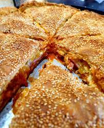 Ρίχνουμε από πάνω λίγο ελαιόλαδο, σουσάμι και τρυπάμε με ένα πιρούνι.