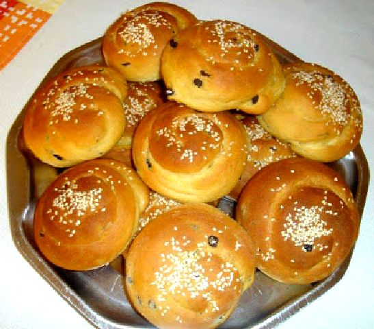 Αλείφουμε από πάνω με λίγο λιωμένο βούτυρο ή νερό λίγο σουσάμι και τα ψήνουμε στους 200 βαθμούς για 20 λεπτά περίπου.