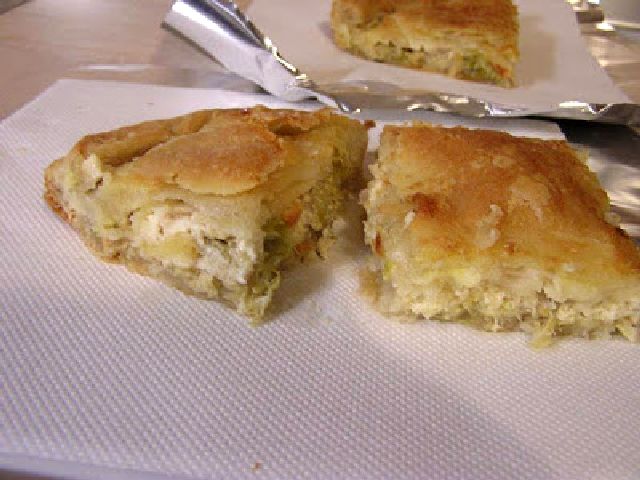 Τσιγαρίζω τα κρεμμύδια ψιλοκομμένα, ρίχνω τα πράσα ψιλοκομμένα, αλάτι πιπέρι και προς το τέλος το εβαπορέ.